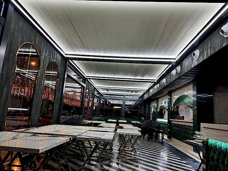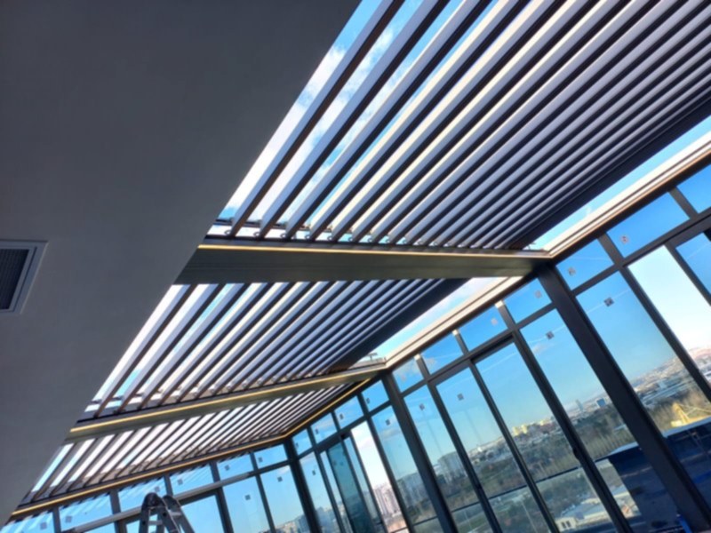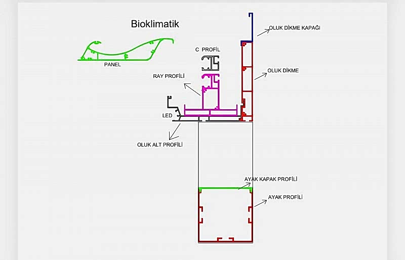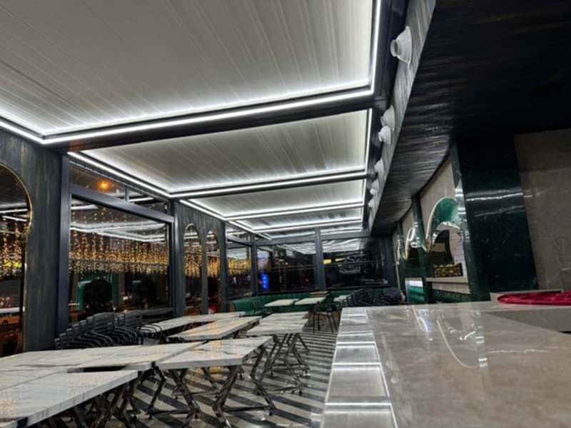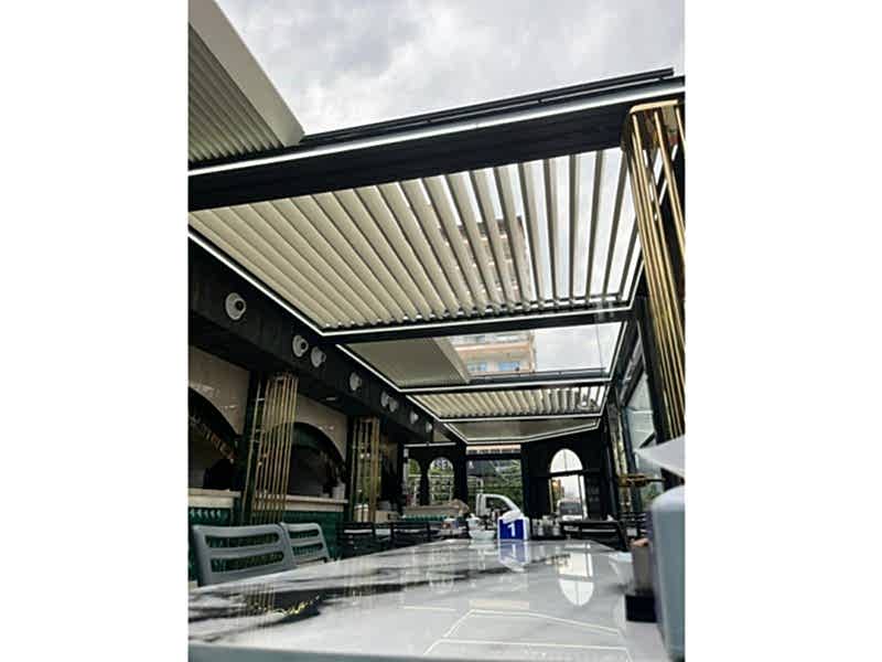 Bioklimatik Sistemler, katlanma ve toplanma özelliklerini bir arada sunarak %5 eğimle çalışır ve su tahliyesi sağlar. Su almama garantisi olan bu sistem, 8 metreye kadar tek ünite olarak üretilebilir; daha uzun ölçülerde ise birden fazla ünite ile uygulanır. Paslanmaz profiller ve aksesuarlarla donatılan sistem, hareket algılayıcı switchlerle güvenlik sağlar.