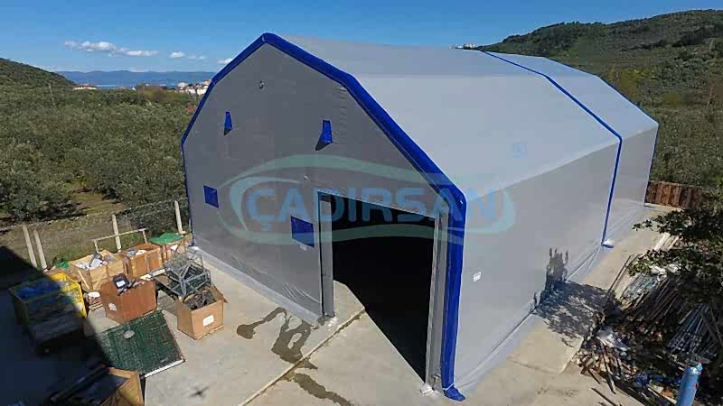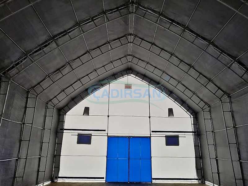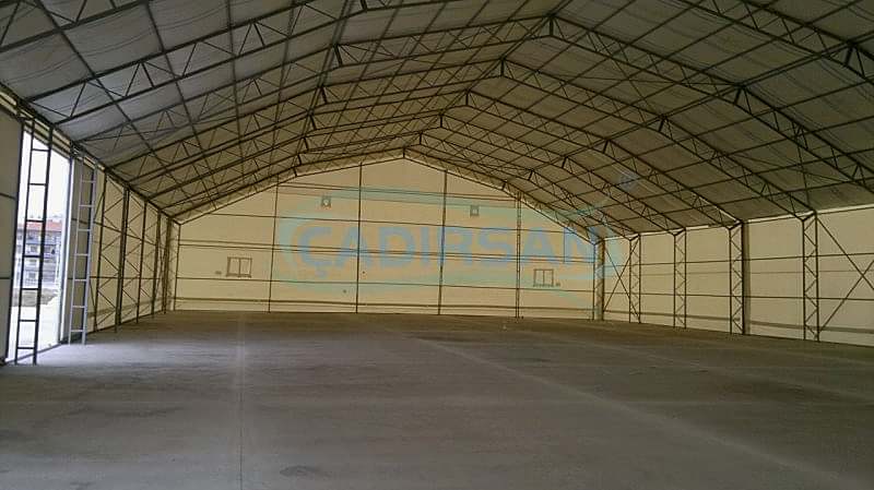 Bu çadır yapılar her kullanım amacına uygundur. Profesyonelce uygulama gerektirir. Müşterimizin istediği ebatlarda özel olarak imal edilir. Genellikle depo çadırı veya hangar çadırı olarak bilinen bu makaslı çadır sistemleri tüm hava koşullarına karşı oldukça dayanıklıdır.