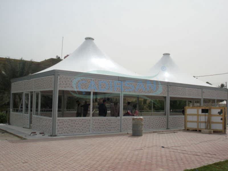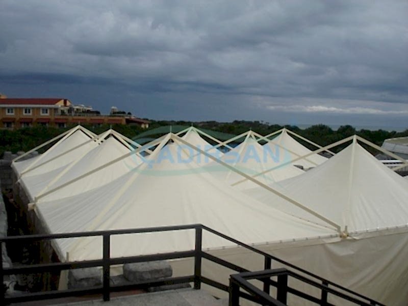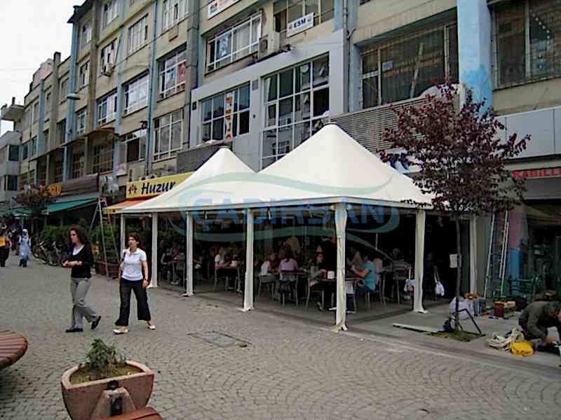 Bu sistemler membranın kare formundaki çelik kafes taşıyıcı üzerine gerilmesiyle oluşur. Çelik kafes taşıyıcı sistemi yan yana birleştirerek sınırsız bir alan oluşturmak mümkündür. Ayrıca bu sistemin merkezinde herhangi bir direk olmaması kullanışlı bir ortam sağlamaktadır. Bununla birlikte daha az ankraj alt yapısı gerektirmesi de sistemin farklı zeminlere kolaylıkla kurulabilmesini sağlamaktadır. Gazebo sistemi farklı iklim koşullarında dört mevsim kullanma imkanı olduğundan, cafeden araç parkına kadar geniş bir kullanma alanı vardır.