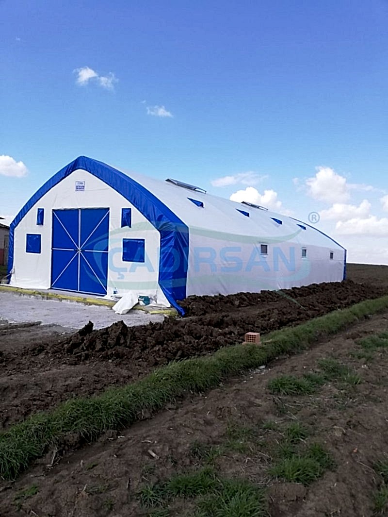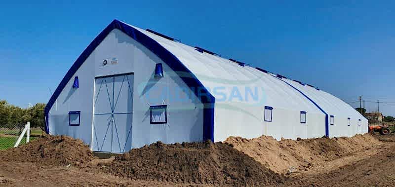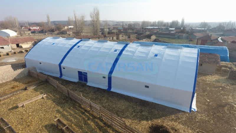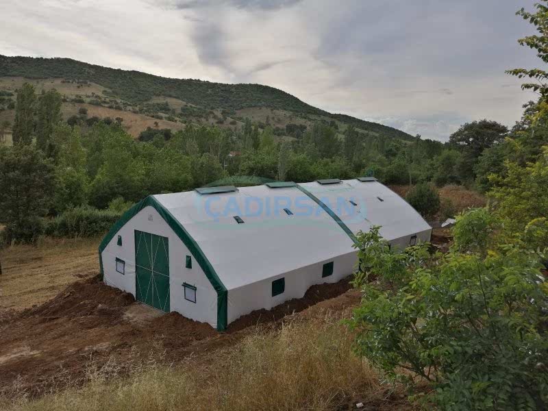 Hayvan barınaklarımız, müşterimizin kullanım amacına göre, hangi şehirde kullanacağına göre (şehrin iklim koşulları nedeniyle), içinde bulunacak hayvanların türüne göre, ve müşterimizin ebat olarak isteklerine göre özel olarak imalatı yapılmaktadır. Çadırlarımız uyguladığımız yalıtımlar sayesinde içinde bulunan hayvanların sağlıklı bir şekilde yaşamasını ve verimliliklerini artmasını sağlar. İskeletimizin kullanımı ömürlüktür. Brandamızın ömrü ise 15 yıl a kadar dayanıklıdır. Bu çadırlarımızda iskelet yapısı ekonomik borulu ve makaslı profil olarak müşterimizin isteği doğrultusunda tasarlanabilir. Ürünlerimiz ülkenin her noktasında büyükbaş hayvan barınağı, küçükbaş hayvan barınağı ve kanatlı hayvan barınağı için uygun olup hayvanlarınız için en uygun yaşam ortamı sağlanır.